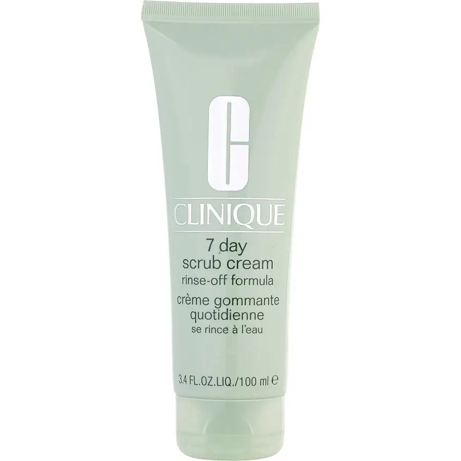 Clinique 7 Day Scrub  Rinse Off Cream is a gentle exfoliating cream polishes and refines skin’s texture. Dermatologist-developed exfoliating cream gently brushes away roughness and flakiness, clearing the way for moisturizer and smoother makeup application. The lightweight formula smooths skin, helping to minimize the appearance of fine, dry lines. No parabens. No phthalates. No fragrance.